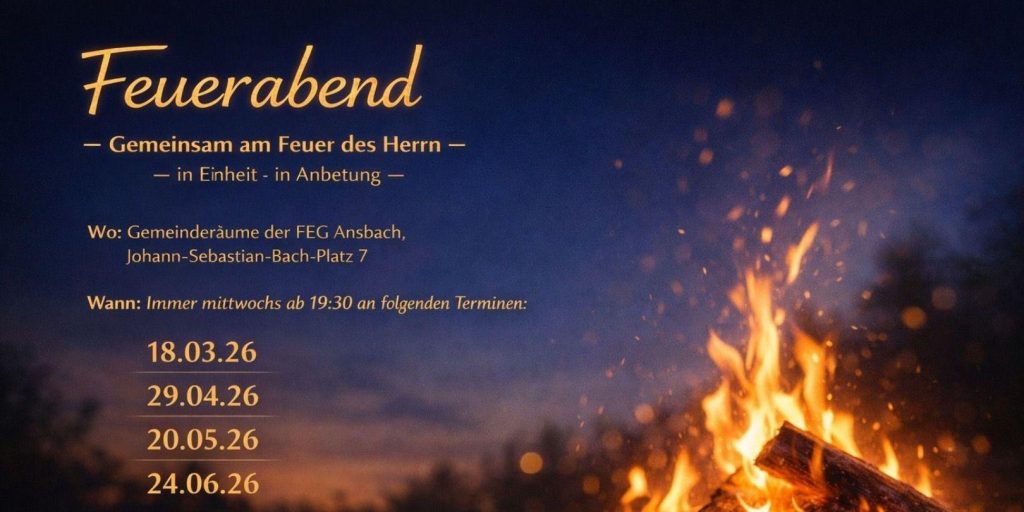Feuerabend 8 Stunden ago by Wolfgang Heubeck Kalender Zum Kalender hinzufügen Zu Timely-Kalender hinzufügen Zu Google hinzufügen Zu Outlook hinzufügen Zu Apple-Kalender hinzufügen Einem anderen Kalender hinzufügen Als XML exportieren Wann: 18. März 2026 um 19:30 Repeats 2026-03-18T19:30:00+01:00 2026-03-18T19:45:00+01:00 Wo: in unseren Gemeinderäumen Johann-Sebastian-Bach-Platz 7 91522 Ansbach Deutschland sonstige Termine